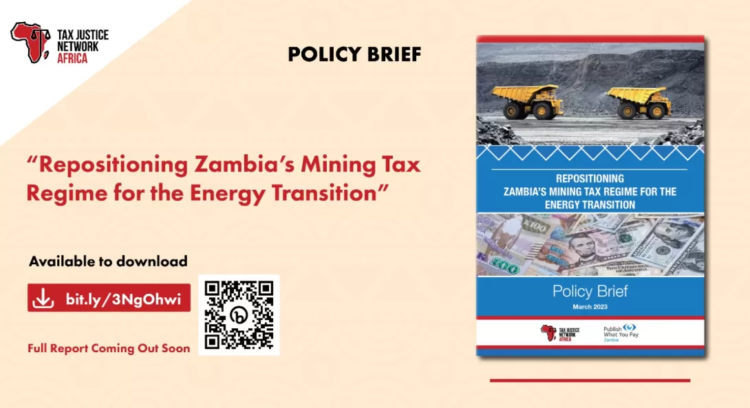 A new report by Tax Justice Network Africa (TJNA) and Publish What You Pay Zambia calls for a revamp of Zambia’s mining tax regime if the country is to reap the benefits of the global energy sector's shift from fossil-based systems of energy production and consumption to renewable energy sources.