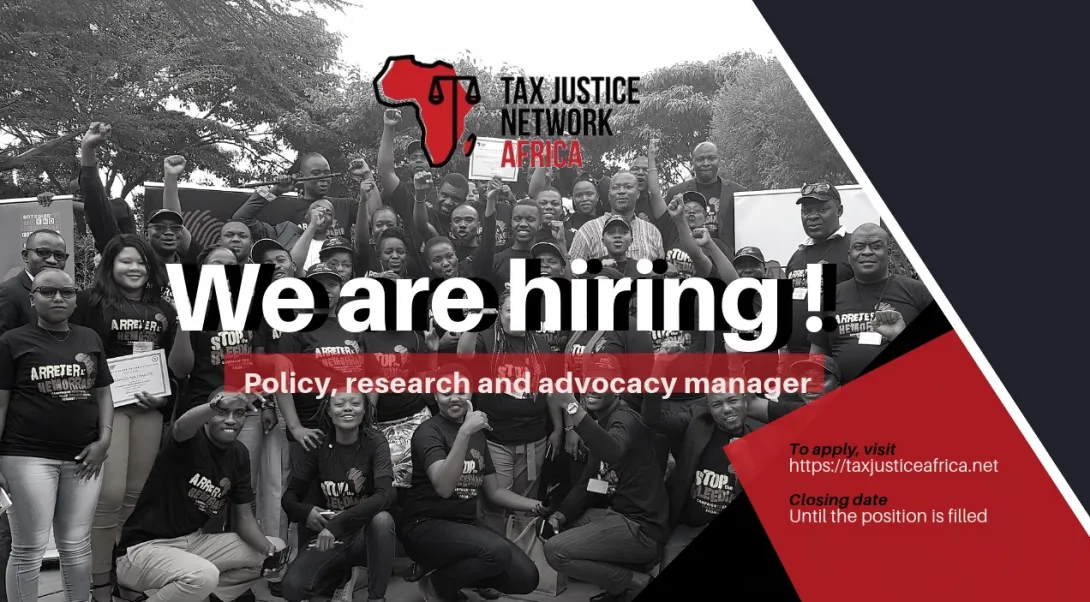 The Tax Justice Network Africa seeks to recruit an experienced individual to join our dynamic team dedicated to promoting progressive and equitable taxation in Africa. As the Policy Research and Advocacy manager you will lead the policy unit in three critical areas including: Research coordination, Policy engagement at regional and global level, and technical backstopping on our national level advocacy. Read more on job position here: TJNA Policy research and advocacy manager Please note that applications will be reviewed on a rolling basis