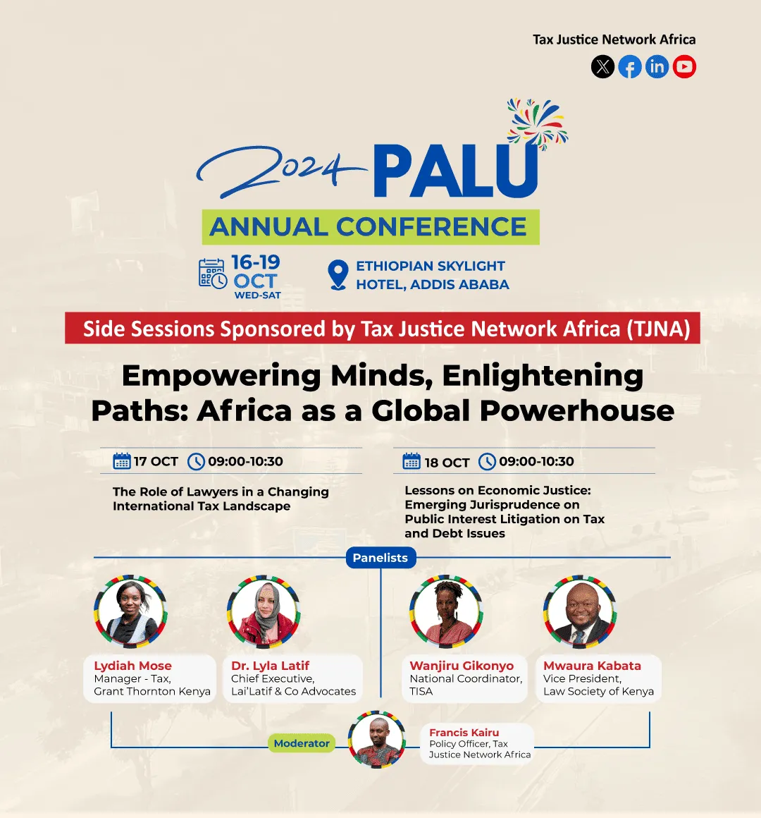 Tax Justice Network Africa will participate in the 14th Annual Pan African Lawyers Union (PALU) conference taking place from 15 to 19 October 2024 in Addis Ababa, Ethiopia.