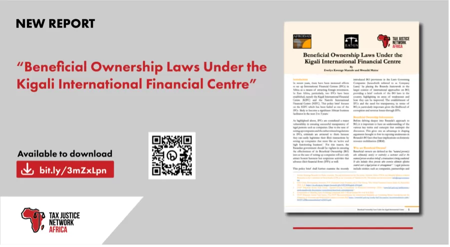 The report co-authored by TJNA’s Policy Associate Everlyn Muendo and Mwaniki Maina a Researcher at the Committee on Fiscal Studies (CFS) at the University of Nairobi (UoN) and an advocate of the High Court of Kenya presents its discoveries and proposals regarding the issue of beneficial ownership in the Kigali International Financial Centre.